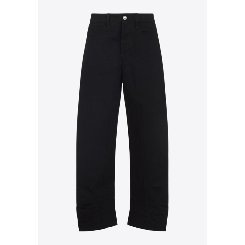 Material: 100% cottonBelt loopsFront button and zip closureFive pocket designBack tonal logoed patchStraight hemTonal stitching
